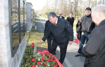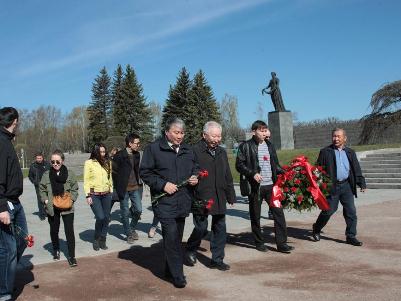 27 апреля, в День республики, Председатель Государственного Собрания (Ил Тумэн) Республики Саха (Якутия) Александр Жирков в сопровождении делегации сотрудников Представительства Якутии в Санкт-Петербурге, президента Культурного общества "Саха-Санкт-Петербург" Гаврила Троева и студентов Ассоциации молодежи Якутии "Сайдыы" побывал на Пискаревском мемориальном кладбище, чтобы отдать дань памяти погибшим во время Великой Отечественной войны якутянам - защитникам блокадного Ленинграда.