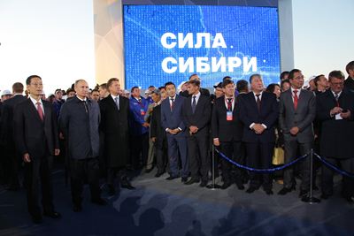 Хозяйкой праздника была компания «Газпром», ее руководитель Алексей Миллер как принимающая сторона стоял на сцене вместе с Владимиром Путиным и Чжан Гаоли. На церемонии начала строительства газопровода «Сила Сибири» присутствовало все руководство Республики Саха (Якутия) – врио главы Якутии Егор Борисов, председатель Государственного Собрания (Ил Тумэн) Александр Жирков, председатель Правительства Республики Саха (Якутия) Галина Данчикова. Среди гостей торжеств – представители федеральных министерств и ведомств, крупных российских и китайских компаний, дальневосточных регионов, члены якутского правительства, руководители крупных предприятий, но большую часть аудитории составляли газпромовцы в синей униформе с фирменным логотипом. «Силу Сибири» будет возводить томское подразделение Газпрома, лучшие его работники прибыли в Якутск, чтобы встретиться с президентом страны.