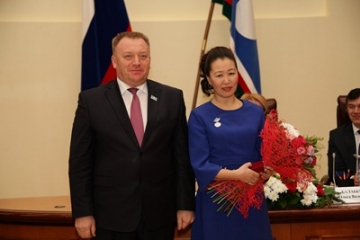 Министр по делам молодежи и семейной политики Республики Саха (Якутия) Афанасий Владимиров поздравляя женщин с 8 марта отметил, что с испокон веков женщина остается для всех нас олицетворением чуткости, нравственности и милосердия, передающей новым поколениям вечные ценности – Любовь, Добро, Веру. Министр подчеркнул, что в целях повышения социального статуса многодетных матерей, придавая особое значение роли матери в воспитании детей, в 2003 году учрежден Знак «Материнская Слава», которым награждены многодетные матери, имеющие семь и более несовершеннолетних детей. Особые слова поздравления министр адресовал женщинам, которые взяли на себя воспитание приемных детей и отдают им тепло своей души. Это – стратегическое направление государственной семейной политики, провозглашенное в Национальной стратегии действий в интересах детей. В 2014 году знаком «Үйэ саас» отмечены 5 жителей республики, из них 4 – женщины. Министр Афанасий Владимиров в знак внимания руководства республики вручил Ольге Балабкиной букет цветов.
