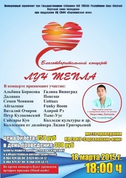 Вчера, 18 марта 2015 года, в КЦ СВФУ «Сергеляхские огни» состоялся благотворительный концерт «Луч тепла», организованный Молодежным парламентом Якутии по сбору средств на лечение 16-летнего Дмитрия Эверстова.