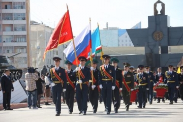 В День Победы, 9 мая, в столице Якутии состоялись возложение цветов к мемориалу Победы и торжественный митинг. Торжественные мероприятия по традиции прошли на площади Победы, где собрались тысячи якутян, чтобы отдать дань памяти воинам-победителям и труженикам тыла.