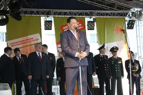 От имени Госсобрания (Ил Тумэн) с Днем Победы поздравил якутян председатель парламента Виталий Басыгысов. Он поблагодарил ветеранов за вклад в Победу и отметил, что великие жертвы не пропали даром, и новое поколение якутян будет помнить вечно героизм участников войны и тружеников тыла.