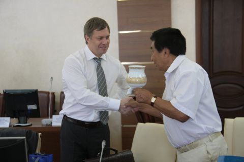 Затем Алексей Русских ответил на вопросы депутатов, после чего ему в торжественной обстановке вручили памятный сувенир – якутский чорон. Все участники встречи выразили надежду на дальнейшее плодотворное сотрудничество.