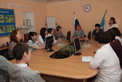 Директор Центра Альбина Сивцева продемонстрировала гостям работу Школ сахарного диабета, артериальной гипертонии и здорового питания, все обратившиеся обучаются здесь основам здорового образа жизни, подходящему режиму двигательной активности.