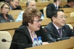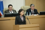С докладом выступила министр имущественных и земельных отношений Якутии Евгения Григорьева, с содокладом - председатель постоянного комитета Государственного Собрания (Ил Тумэн) по земельным отношениям, природным ресурсам и экологии Афанасий Софронеев.