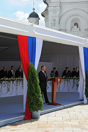 В своей приветственной речи Президент России Владимир Путин отметил, что День России с каждым годом становится всё значительнее, его смысл, дух, настроение созвучны современному развитию Российской Федерации. Он обратился к истории этого праздника и отметил, что все помнят, «насколько резким и крутым был поворот в начале 90-х годов – поворот к новой жизни, как он сложно складывался, как шли глубинные изменения в политике и экономике», и только воля, сила, терпение народа России помогли в те годы преодолеть сложнейшие испытания.