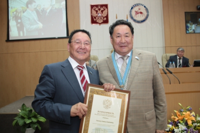 За вклад в укрепление государственности, формирование и совершенствование законодательства республики, многолетнюю плодотворную работу и активную общественную деятельность почетное звание Заслуженного работника народного хозяйства республики присвоено председателю постоянного комитета парламента республики по проблемам Арктики и коренных малочисленных народов Севера Виктору Губареву, почетное звание Заслуженного юриста Республики Саха (Якутия) – председателю постоянного комитета Ил Тумэна по государственному строительству и законодательству Ольге Макиенко.