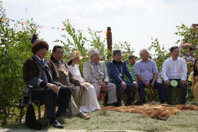 Во время театрализованного действия танцевали девушки, переодетые в стерхов, промчались более десятка лошадей разных мастей, и, конечно, несколько обрядовых церемоний провел почтенный алгысчыт.