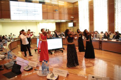 Церемония открытия началась с выступления выпускников Высшей школы музыки – ансамбля «Виртуозы Якутии». Двадцатилетию Высшей школы музыки посвящено проведение конгресса, кроме того, он приурочен к началу работы в нашем регионе проекта «Музыка для всех». Проект будет реализован республиканскими министерством культуры и духовного развития и министерством образования. Соглашение об этом было подписано на последовавшем после церемонии открытия пленарном заседании министрами Андреем Борисовым и Сарданой Татариновой.