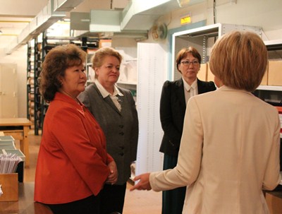 На правах хозяев сотрудники архива провели экскурсию по второму корпусу архивохранилища. Руководитель Департамента по архивному делу Айталина Захарова рассказала, что архивная служба республики состоит из возглавляемого ею Департамента, двух государственных казенных учреждений «Национальный архив Республики Саха (Якутия)», центра документов по личному составу, 35-и муниципальных архивов и тысячи ведомственных архивов по всей территории республики. «Архивный фонд состоит почти из двух миллионов различных документов по истории нашего северного края, хранящихся на постоянной основе», - говорит Айталина Захарова.