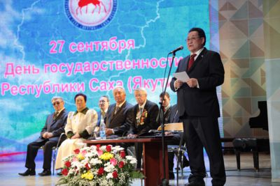 Сегодня, 27 сентября 2013 года, руководство республики и общественность Якутии приняли участие в торжественном заседании парламента, правительства и общественности Якутии, посвящённом Дню государственности республики.