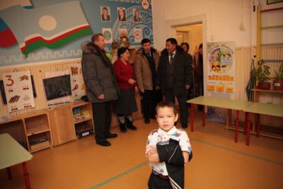 После посещения школы народные депутаты направились в детский сад «Туллукчаан». Заведующая Екатерина Алексеева рассказала, что детсад посещают 70 малышей. По словам заведующей, в здании сильно прогнили полы, со времён основания дошкольного образовательного учреждения капитальный ремонт проводился лишь один раз. Входные и межкомнатные двери по причине осадки и проседания конструкции не закрываются, нужен ремонт потолков.