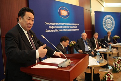 Глава городского округа «Город Якутск» Айсен Николаев отметил, что законодательное регулирование является важнейшим фактором для развития макрорегиона. На Дальнем Востоке порядка 2 млн. 400 тысяч человек, а это 37%, сосредоточены в девяти административных центрах, а потому необходима постановка новых стратегических задач, считает Айсен Сергеевич. При этом, «в наших экстремальных климатических условиях все приходит в негодность гораздо быстрее». Также глава Якутска призвал создать возможность законодательного закрепления создания крупных региональных фондов по модернизации ЖКХ.
