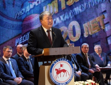Биһиги, бүгүҥҥү кэм дьоно, Саха Өрөспүүбүлүкэтин саҥа парламенын 20 сылын бэлиэтиир күммүтүгэр ааспыт кэм суолтатын, олохпут бары түгэннэрэ биир утумнаахтарын сөпкө ылынан, Сахабыт сирин судаарыстыбаннаһын төрүттэспит чаҕылхай дьоммут Максим Аммосов уонна Платон Ойуунускай, Исидор Барахов уонна Степан Аржаков, оччолорго эдэр Саха Өрөспүүбүлүкэтин салайсыбыт бары дьоммут аатыгар махтанар, сүгүрүйэр ытык иэстээхпит. Ити ааттаммыт бастыҥ дьоммутун кытта биир кэккэҕэ тэҥҥэ тутан, бэйэлэрин мындыр өйдөрүнэн, билиилэринэн-көрүүлэринэн уонна дьаныардаах үлэлэринэн норуоппут инники сайдыытыгар олук уурбут, өрөспүүбүлүкэбит судаарыстыбаннаһын олохтоспут уонна бөҕөргөтүспүт Илья Винокуров уонна Семен Борисов, Гавриил Чиряев уонна Юрий Прокопьев, Мария Нартахова уонна Александра Овчинникова, Евдокия Горохова уонна Афанасий Илларионов, уо.д.а. үтүө ааттарын бэлиэтээн этэбит.