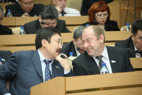 Несколько вопросов докладчикам задал Председатель Госсобрания (Ил Тумэн) Александр Жирков. Так, спикер парламента поинтересовался параметрами индикаторов по Году Села. Пётр Алексеев ответил, что данные индикаторы утверждены в апреле 2013 года, но с учётом дефицита государственного бюджета республики, требуется их пересмотр. Также спикер Госсобрания спросил о динамике софинансирования из федерального бюджета.