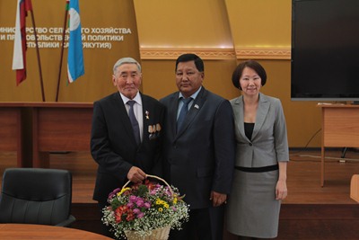 Слова поздравлений и пожеланий Герою Труда России сказали председатель Верховного Совета Республики Саха (Якутия) XII созыва, народный депутат СССР XII созыва, народный депутат Госсобрания (Ил Тумэн) трёх созывов Климент Иванов, кавалер ордена «Полярная звезда» Павел Шарин.