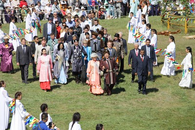 Өрөспүүбүлүкэ баһылыгын эбээһинэһин толорооччу Егор Борисов норуокка туһаайан Ысыах Саха сиригэр олохтоох бары норуоттар сомоҕолоһууларын, өйдөһүүлэрин интернациональнай бырааһынньыктарыгар кубулуйбутун бэлиэтээтэ. Кини Саха Өрөспүүбүлүкэтэ бүтүн Дальнай Восток уонна дойду кэскиллэрин быһаарар сүҥкэн соруктары толорорун туһунан эттэ. «Биир күҥҥэ хас да стратегическай суолталаах объектары үлэҕэ киллэрии ону бигэргэтэр. Бэҕэһээ Мирнэй улууһугар Удачнайга аан дойдуга саамай бөдөҥ алмааһы хостуур шахта аһылынна, Дьокуускай куоракка оҕолорго 600 миэстэлээх саамай бөдөҥ комплекс тутулланүлэҕэ киирдэ. Саха сиригэр бүтүн Дальнай Восток сайдыытын уонунан сылларга хааччыйар кыахтаах гаас саппаастаах сири туһаҕа таһаарыы саҕаланан эрэр. Саха сирин олохтоохторо сарсыҥҥы күҥҥэ эрэллэрэ улахан”, -- диэн эттэ Егор Борисов.