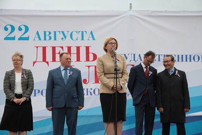 Выступающие отметили, что этот праздник, в первую очередь, направлен на повышение чувства патриотизма у россиян, ответственности за развитие родины. От имени Государственного Собрания (Ил Тумэн) Республики Саха (Якутия) с Днем государственного флага Российской Федерации якутян поздравила Ольга Макиенко. «Имея многовековую историю нынешний триколор вновь в новой России появился в непростые времена – времена августовского путча. Именно тогда появился указ президента страны, после издания которого жизнь в стране начала стабилизироваться. Сегодня в сложных условиях в жизни страны значение этого праздника усиливается и приобретает еще большую значимость для дальнейшего сохранения стабильности», - отметила вице-спикер. Александр Ким-Кимэн отметил, что одним из знаковых событий этого года является подписание долгосрочного соглашения России с КНР о купле-продаже российского газа. «В этом проекте Якутия занимает достойное место. Проект «Сила Сибири» будет начинаться с якутского газа, - отметил он. - Сегодня геополитическая ситуация в мире сложная. Нас беспокоит ситуация на Украине. Именно сейчас мы, россияне, должны быть сплоченными. Я думаю и уверен, что якутяне своим каждодневным трудом, своими успехами будут развивать экономику и культуру многонациональной российской федерации».