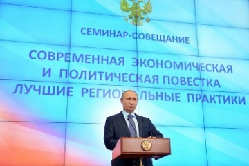 Сегодня, 29 января 2015 года, Президент России Владимир Путин принял участие в ежегодном семинаре-совещании на тему «Современная экономическая и политическая повестка. Лучшие региональные практики», организованном Администрацией Президента Российской Федерации для высших должностных лиц исполнительных органов государственной власти субъектов РФ, председателей законодательных Собраний субъектов Федерации, глав столичных и крупных городов страны.