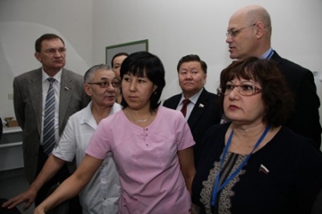Сразу по приезду в Якутск парламентарии Федерального Собрания Российской Федерации – заместитель председателя Комитета Государственной Думы по охране здоровья Сергей Дорофеев, члены Комитета Госдумы Ольга Красильникова, Разиет Натхо, Федот Тумусов, член Комитета Совета Федерации по социальной политике Владимир Круглый, руководитель аппарата Комитета Государственной Думы по охране здоровья Игорь Селезнёв, а также начальник отдела организации первичной медико-санитарной помощи Минздрава Сахалинской области Нина Мухина, исполнительный директор территориального фонда обязательного медицинского страхования Магаданской области Александр Верный посетили Республиканскую больницу №1 - Национальный центр медицины.