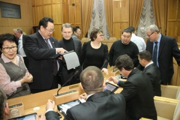 В ходе встречи спикер парламента рассказал о том, что всего неделю назад Ил Тумэн обзавелся новым официальным сайтом: «Наш сайт стал современным, более информативным. На пленарных заседаниях мы уже не используем документы, все – в электронном виде. На этом мы не думаем останавливаться, через полгода беготни с бумагами в Ил Тумэне быть не должно», - подчеркнул Виталий Басыгысов.