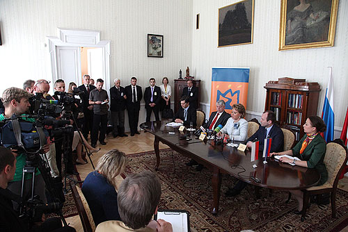 Спикер указала на активизацию контактов между представителями руководства двух стран, плодотворное сотрудничество в экономике, социальной и гуманитарной сферах. «Это особенно отчётливо видно на уровне регионов, - подчеркнула В.Матвиенко. – Межрегиональные связи избавлены от влияния политической конъюнктуры в большей степени, чем межгосударственные отношения. Сегодня сотрудничество между регионами является локомотивом оздоровления российско-польских отношений».