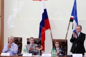 Председатель Государственного Собрания (Ил Тумэн) первого созыва Егор Ларионов подробно рассказал о жизни и деятельности юбиляра.