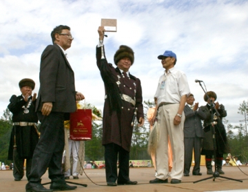 Сыана политикатыгар государственнай кэмитиэт бэрэссэдээтэлэ Валентина Лемешева илиититтэн СР президенэ Е.А. Борисов бочуотунай грамотатын „Бережнева” бааһынай хаһаайыстыба салайааччыта, Үөдэй олохтооҕо А.Б. Бережнева, Хатырык нэһилиэгин землеустроитела А.Н. Попов ыллылар.
