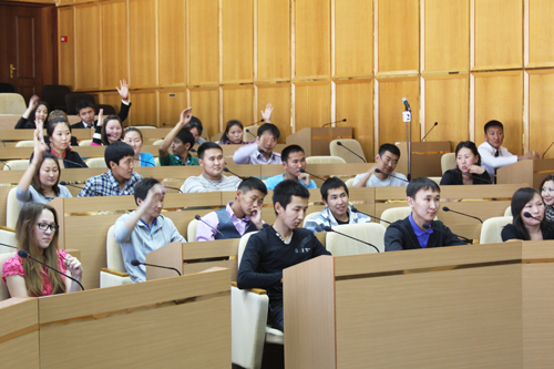 Мероприятие состоялось в здании Госсобрания (Ил Тумэн). Сначала для ребят организовали экскурсию по зданию парламента, показали, в каких условиях работают народные депутаты республики, сотрудники аппарата. Большой интерес у будущих аграриев вызвал зал, где проходят пленарные заседания.