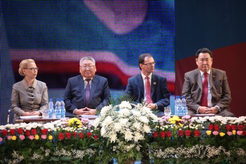 В мероприятии, которое прошло в Государственном театре оперы и балета им. Д.К.Сивцева – Суоруна Омоллоона, приняли участие президент Якутии Егор Борисов, вице-президент Дмитрий Глушко, председатель правительства Галина Данчикова, народные депутаты республики, члены кабинета министров, ветераны, руководители предприятий и организаций, представители молодежи.