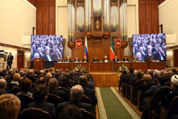 Руководитель республиканского парламента напомнил: вслед за Российской Федерацией, 30 августа 1990 года, Верховный Совет Татарстана принял Декларацию о государственном суверенитете, - определившую вектор политико-правового реформирования национально-государственного устройства республики на новом историческом этапе.