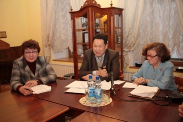 Встречу открыла директор Национальной библиотеки Валентина Самсонова. Она отметила, что уходящий год был насыщен значительными событиями в общественно-политической, социально-экономической жизни страны, одним из них явилось Послание Президента Российской Федерации Владимира Путина Федеральному Собранию РФ, в котором принял участие Председатель Государственного Собрания (Ил Тумэн) Виталий Басыгысов.