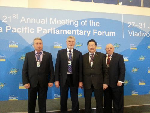 Председатель Государственного Собрания (Ил Тумэн) Якутии Виталий Басыгысов и народный депутат Республики Саха (Якутия), председатель постоянного комитета по государственному строительству и законодательству Ольга Макиенко принимают участие в работе 21-ой сессии Азиатско-Тихоокеанского парламентского форума.