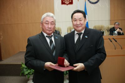 Председатель Госсобрания республики Виталий Басыгысов вручил награды Государственного Собрания (Ил Тумэн). Почетной грамотой Госсобрания республики за значительный вклад в развитие государственности и парламентаризма Республики Саха (Якутия) награждён представитель Государственного Собрания (Ил Тумэн) в Совете Федерации Федерального Собрания РФ Александр Матвеев и народный депутат республики Ньургун Тимофеев.