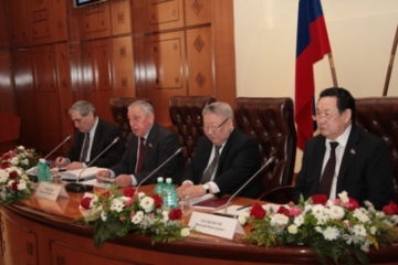 В рамках проведения «круглого стола» о проблемах комплексного законодательного регулирования развития Восточной Сибири и Дальнего Востока России, о проблемах законодательного обеспечения вопросов сохранения трудовых ресурсов на Дальнем Востоке, обеспечения достойной жизни коренных народов Севера, Сибири и Дальнего Востока выступили заместитель председателя Совета Федерации Вячеслав Штыров, депутаты Госдумы, Республики Саха (Якутия), представители органов исполнительной, муниципальной власти.