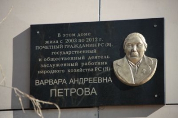 Председатель Государственного Собрания (Ил Тумэн) Виталий Басыгысов 11 апреля 2013 года принял участие в церемонии возложения цветов к мемориальной доске, установленной в память о видном общественном и государственном деятеле, Почетного гражданина Республики Саха (Якутия), заслуженного работника народного хозяйства Республики Саха (Якутия), народного депутата Верховного Совета ЯАССР XI и XII созывов, Государственного Собрания (Ил Тумэн) Республики Саха (Якутия) I созыва Варвары Андреевны Петровой.