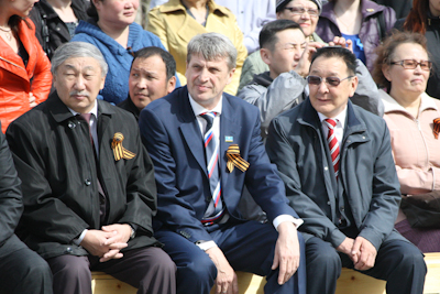 Символ Знамени Победы под звуки военного марша внесли офицеры войск воздушно-космической обороны Министерства обороны Российской Федерации. Вице-президент республики Дмитрий Глушко, в своей приветственной речи отметил, что День Победы самый светлый и святой праздник для всех жителей бывшего Советского Союза, всего мира. Вместе с тем он заметил, что Великая Победа особо важна и ценна для россиян. «Якутия славится и гордится своими сыновьями, которые доблестно сражались на фронтах Великой Отечественной войны. Молодежь сегодня видит людей, которые совершили ратный подвиг, защитив свою великую страну от фашистских захватчиков и совершили трудовой подвиг, поднимая ее из руин, вложили неоценимый вклад в ее развитие», -сказал вице-президент республики и призвал молодых учиться у старшего поколения, добывшего Великую Победу, их стойкости, мужеству, любви к Отчизне.