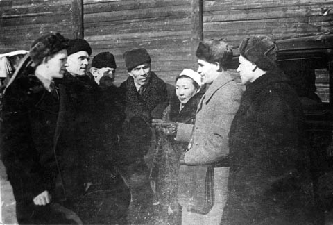 Представитель СНК ЯАССР М.Д. Нартахова (в центре) в составе правительственной делегации в 1942 г. выезжала на 1-й Украинский фронт для вручения подарков трудящихся Якутии бойцам и командирам действующей армии.